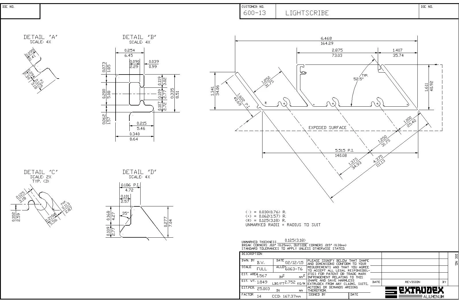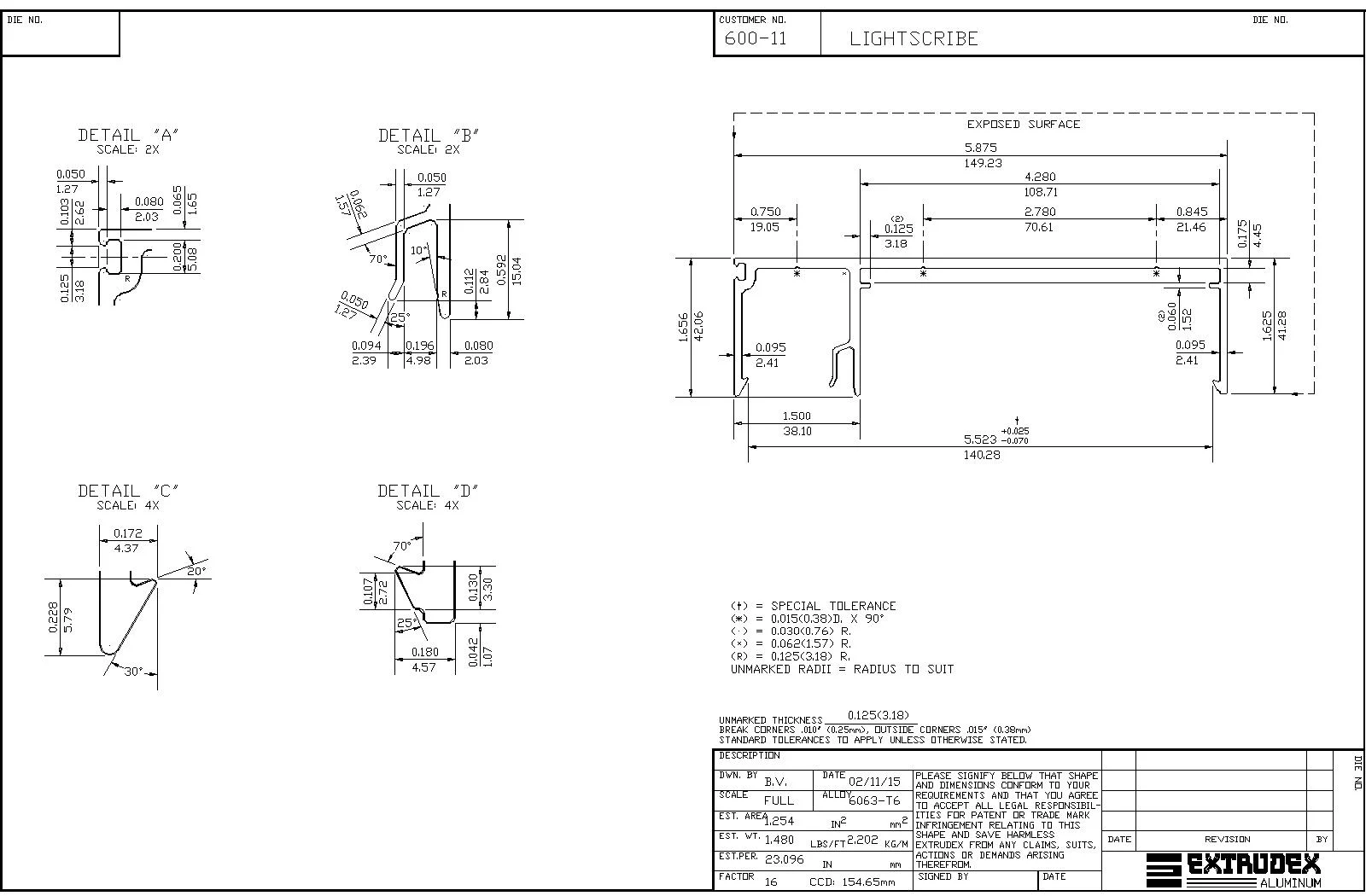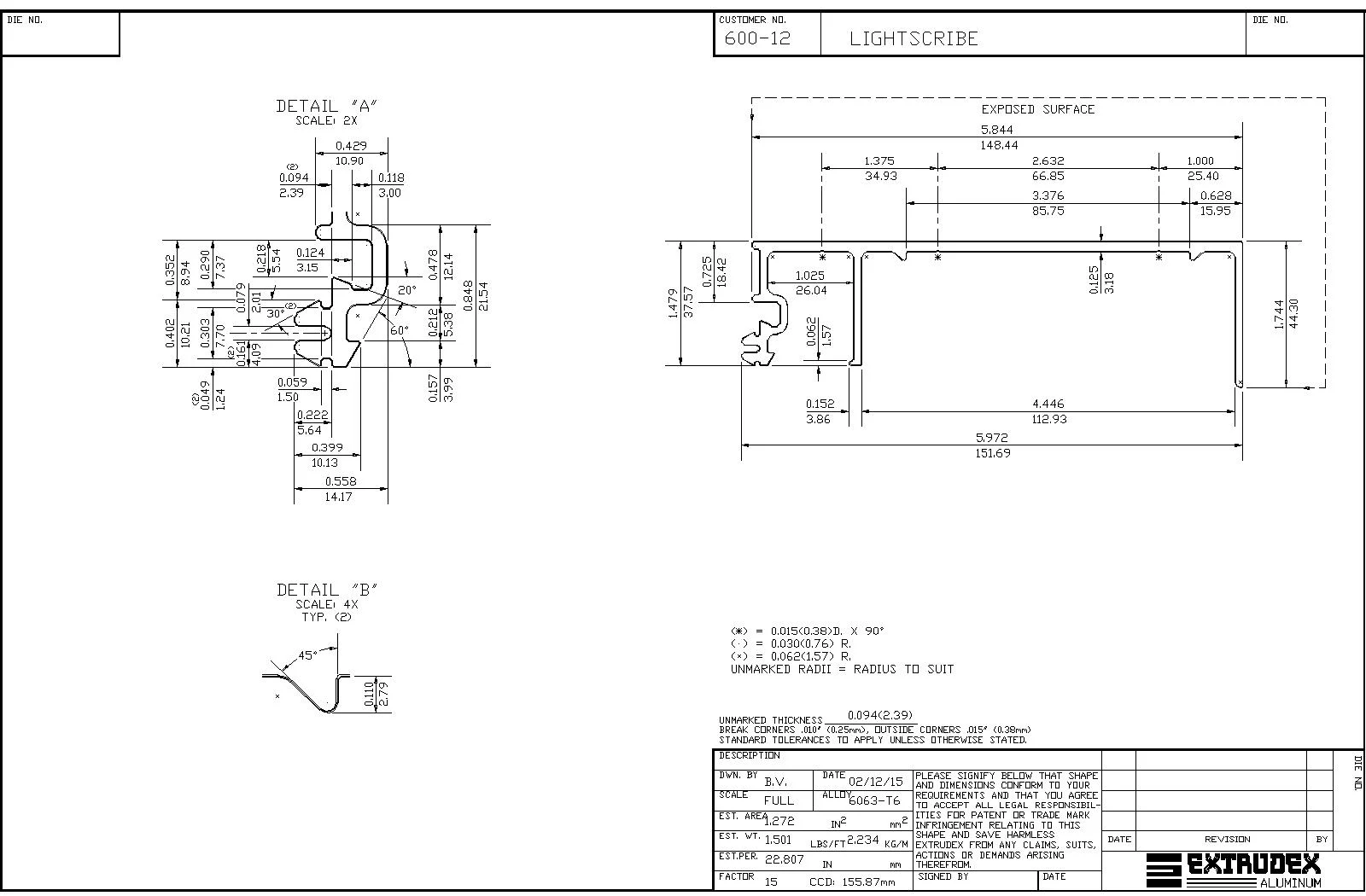 Extrudex, needing to turn around large projects quickly, have contracted with me to provide them with cross-section profile drawings in a timely and accurate manner.